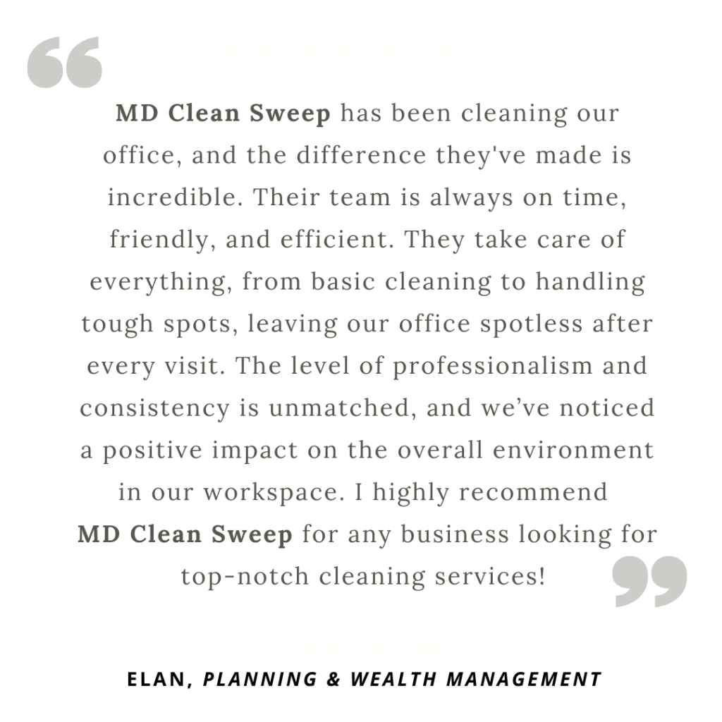At MD Clean Sweep, we are dedicated to providing top quality commercial cleaning services tailored to meet the unique needs of your business. With our experience in the industry, our skilled team is committed to creating clean, healthy, and productive environments for businesses of all sizes. Whether you run an office, retail space, or restaurant, we offer a comprehensive range of cleaning solutions to ensure your workspace is spotless and inviting.